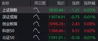 沪指低开0.03%,报3830.44点,深成指跌0.01%,报13074.91点,创业板指涨0.08%,报3098.28点,科创50指数涨0.62%,报1388.86点。沪深两市合计成交额217.23亿元,全市场近2000家个股上涨。华鲲振宇、HBM概念领涨,液冷、CPO概念多数高开;机器人概念股明显降温,锂电池、时空大数据概念小幅下跌。